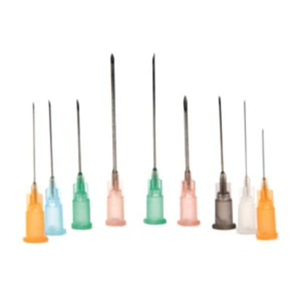 Sharp, tri-beveled stainless steel needles are with non-coring design. Unique grinding and polishing process enhances the sharpness for ease of penetration. Color-coded hubs for easy identification. Latex free (LF).