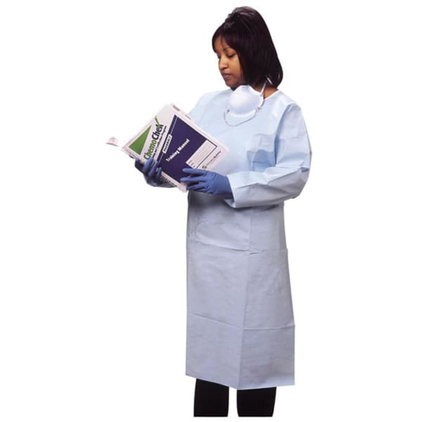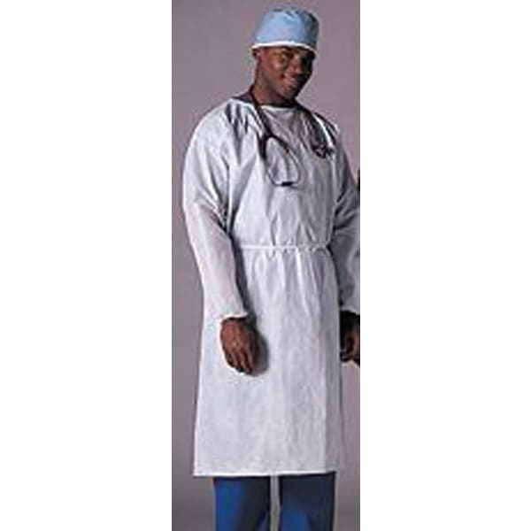 Made of high quality spun bonded polypropylene. Impervious, fluid resistant gowns feature a polyethylene coating, elastic cuffs with waist and neck tie closures.