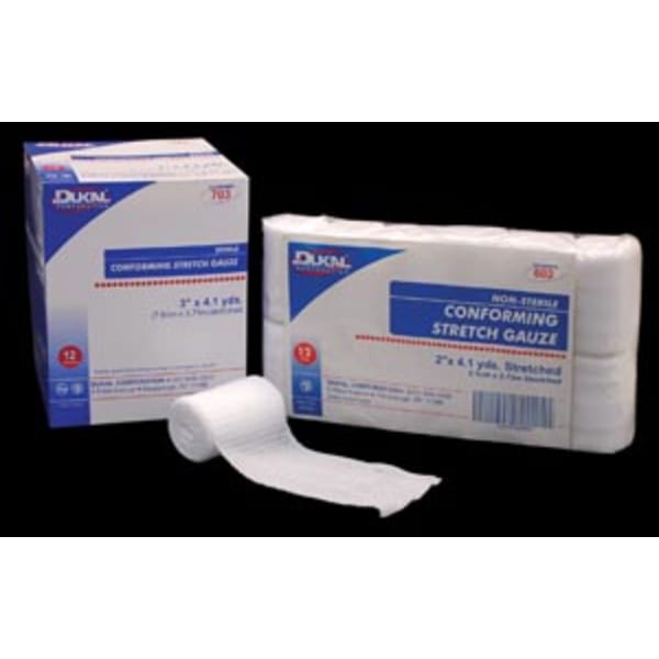 Lighter, economical version of the DUKAL Conforming Stretch Gauze. The rayon/poly blended product is specifically designed not to slip while in use. Provides slight compression to the site while securely holding to any body contour. Single channel construction.
