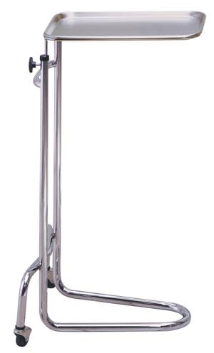 Screw lock adjustment provides secure lock at desired height. Large stainless steel instrument tray is removable for easy cleaning.