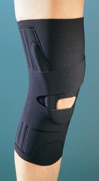 1/8" neoprene with tubular sewn-in "J" buttress and dynamic side-pull compression strap supports patella malalignment, dislocation, and subluxation. Sold in right and left configuration. Ideal for supporting lateral patella subluxation, dislocation or lateral Patellofemoral malalignment.